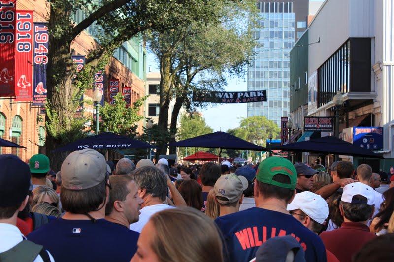 Packed crowds. In fact, our game was the highest attended game in Red Sox history! This seems kind of crazy to me, since it wasn't a particularly special game. It wasn't against the Yankees or to clinch any sort of title. Maybe that means the seats were cheaper? In any case, Red Sox games are always packed. Most people stick it out through the whole game. I have never left a Sox game early.